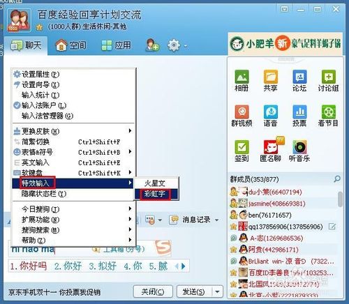 這時候會彈出一個菜單,我們直接選擇——特效輸入——彩虹字——選項,然后點擊彩虹字確定;