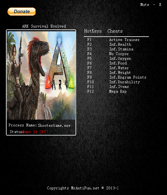 方舟:生存進化十一項修改器188.2對應游戲188.2版本使用,有無限生命、無限體力、無遲鈍等十一項功能,讓你輕松玩轉游戲,需要的下載。