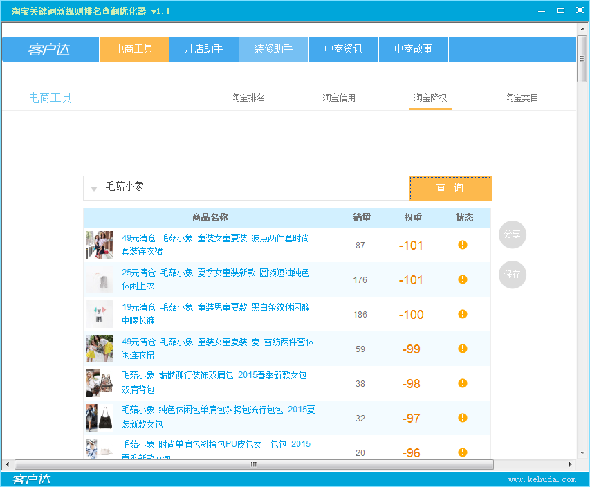 淘寶關(guān)鍵詞新規(guī)則排名查詢優(yōu)化器軟件特色