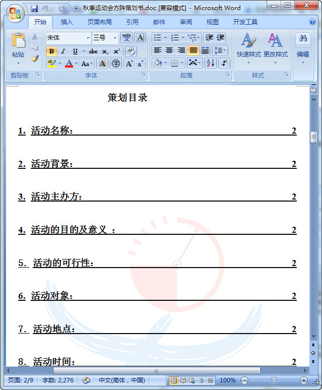 2015年大學(xué)生秋季運(yùn)動(dòng)會(huì)策劃書(shū)預(yù)覽