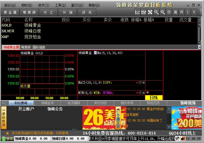 領峰黃金羅盤分析系統(tǒng)匯集領峰現貨黃金白銀實時報價、粵貴銀、外匯、外指等行情信息,以及世界各地財經要聞、央行動態(tài)、市場消息等,信息全面、精確、實時。系統(tǒng)更附設領峰金評、領峰公告、分析視頻和專題文章,助您制定投資理財策略,24小時全面掌握每個獲利機會。
