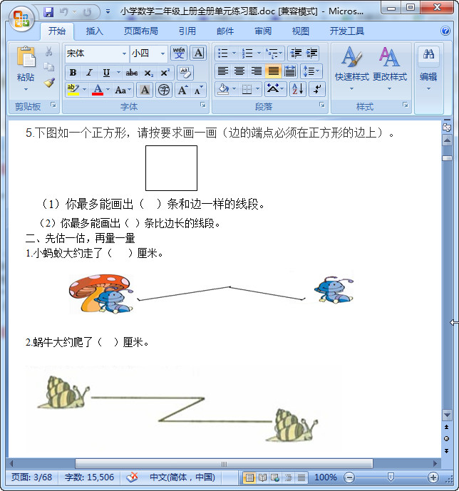 小學(xué)二年級數(shù)學(xué)練習(xí)題上冊內(nèi)容摘錄