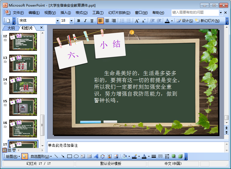 冬天宿舍怎么取暖,你們有神器嗎?寢室天花板不知道怎么裝飾?宿舍晚上斷電應該怎么辦呢?——每個人在大學時期都有過這樣的問題,鑒于此,本節(jié)內(nèi)容咱們不妨一起來探討一下大學生宿舍生活的那些事吧!——既然說到大學生宿舍生活,那就必須要提到宿舍安全了,所以點擊本文相應的下載地址進行下載后你會得到一份由17頁組成的大學生宿舍安全教育主題班會ppt,希望對大家有所幫助!
