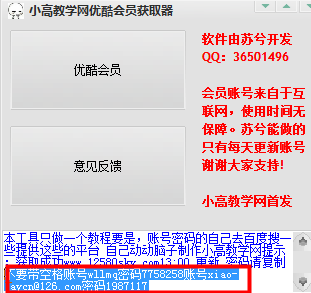 如果說你想要一款可以永久用的優(yōu)酷會員,就趕緊選擇小高優(yōu)酷會員獲取器,這款是是包括了優(yōu)酷會員2016賬號密碼的,從而讓你更好的進行應(yīng)用!