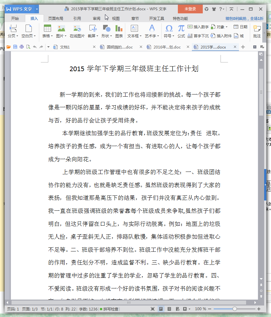 2016年三年級(jí)班主任工作計(jì)劃內(nèi)容摘要