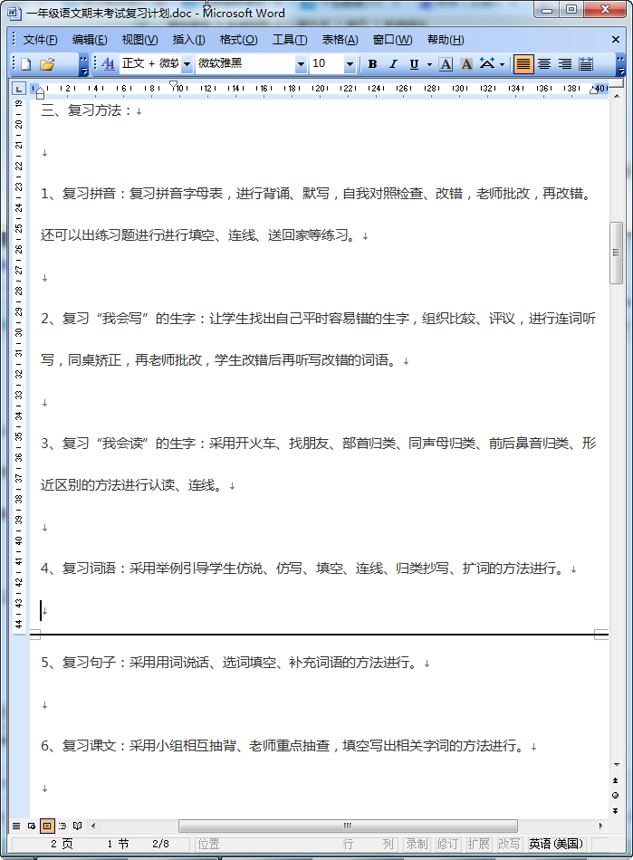一年級(jí)語文期末考試復(fù)習(xí)計(jì)劃預(yù)覽