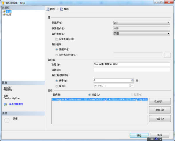單擊添加按鈕,選擇備份路徑,和備份文件名后單擊確定即可
