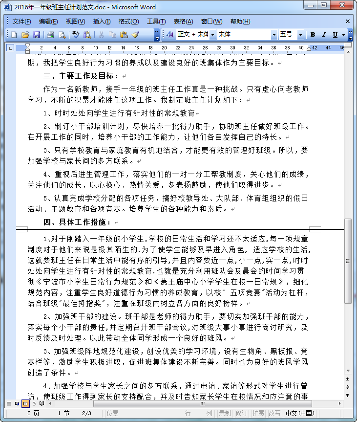 一年級(jí)班主任工作計(jì)劃小學(xué)范文預(yù)覽