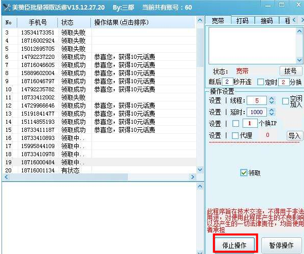 美贊臣批量領(lǐng)取話費(fèi)軟件使用說明
