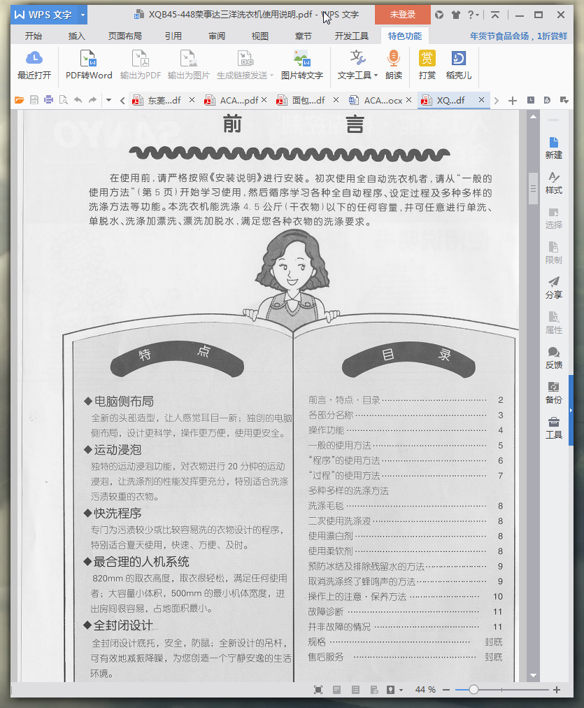 榮事達(dá)三洋洗衣機(jī)XQB45-448使用說(shuō)明書(shū)內(nèi)容預(yù)覽