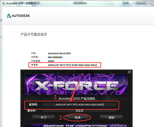 2、成功修補后,將程序中的申請?zhí)枏?fù)制入請求碼項內(nèi),點擊“生成”
