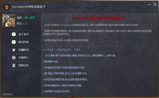 傷害世界Hurtworld繪軟游戲盒子就是現(xiàn)在非常多人都想要的尋找游戲服務(wù)器的軟件。特別是擁有服務(wù)器插件擴展、資源包、服務(wù)端、客戶端等功能!來更好的幫助你們進(jìn)行游戲!