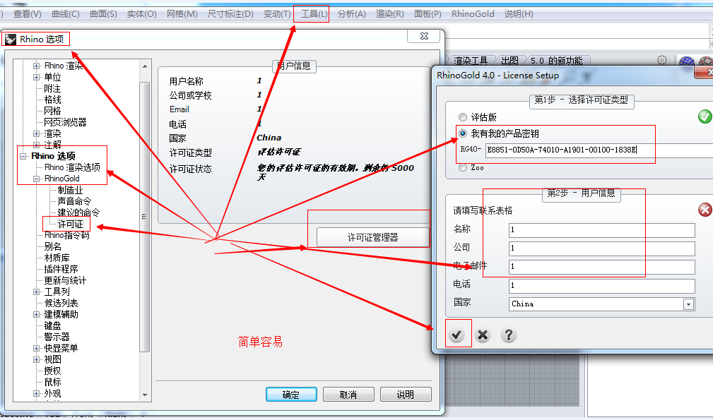 注冊方法二,從RhinoGold 4.0自身軟件里面進行注冊: