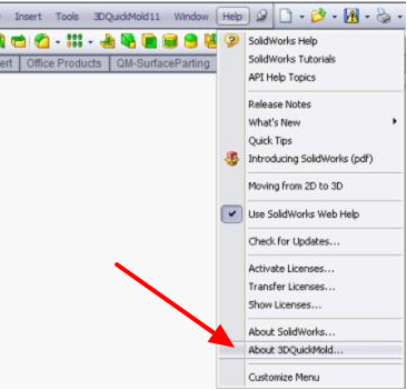 安裝成功后,打開SW,找到“help”-“about 3DQuickMold”