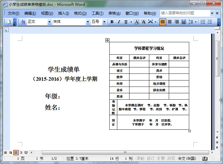 小學(xué)生成績單表格模板,一份完整的doc格式的電子表格,可以直接免費下載下來,然后進(jìn)行編輯、打印,非常的不錯,是2016年最新的哦!如果你是一名老師,要給同學(xué)發(fā)成績單的話,就來東坡下載看看吧!