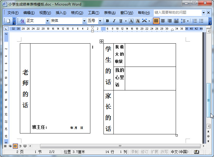 小學(xué)生成績單表格模板預(yù)覽