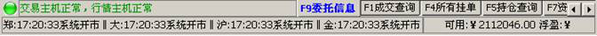 五)、最下邊是系統(tǒng)和交易所連接狀態(tài)以及當前用戶的資金信息。