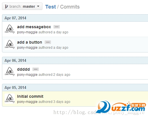 然后”commit to master”, 這樣是把工程提交到本地倉庫, 這一點也是github比較給力的地方,有個” 本地倉庫”的概念, 這樣在沒有網(wǎng)絡(luò)的情況下,可以先提交到這里,然后有網(wǎng)絡(luò)后,把同步到服務(wù)器. 同步服務(wù)器在右上角的”sync”操作: