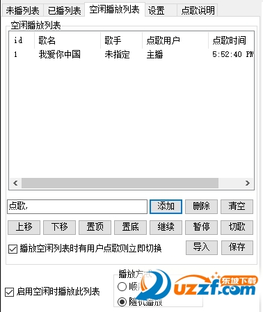 (e)主播需要保存空閑播放列表可以點擊保存按鈕,則下次啟動點歌系統(tǒng)時將會自動載入空閑播放列表。記得添加完畢后點保存。