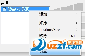 按照上面的步驟安裝好插件后,啟動OBS, 然后在OBS主界面的“來源”列表窗口里面點鼠標的右鍵,然后點擊彈出來的“添加”,再在里面點擊“熊貓TV點歌源”來添加這個源,