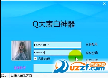 這是軟件登陸窗口,注冊此表白神器