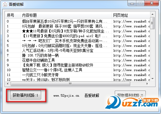 1、下載后,運行軟件,直接點獲取福利線路,有1和2隨便點哪個都可以。