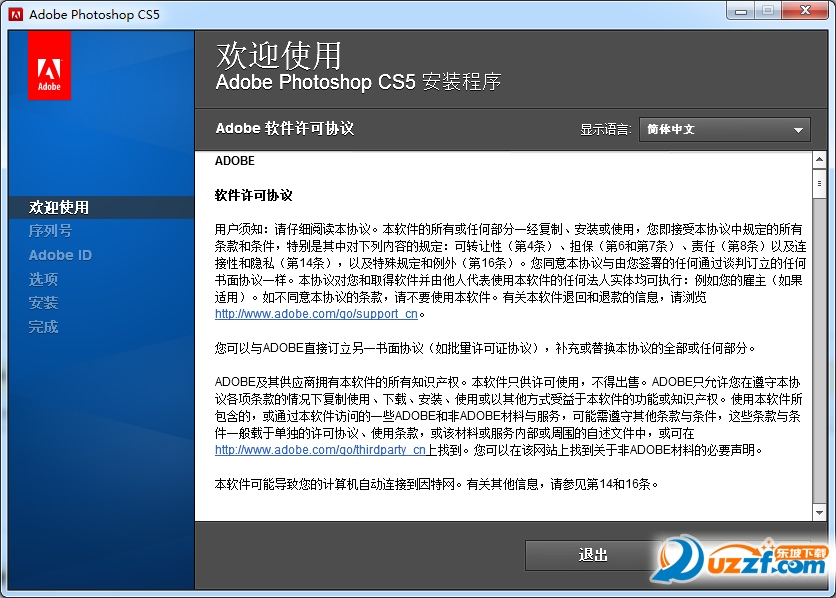 這是Photoshop CS5官方中文正式原版的安裝界面,點“接受”