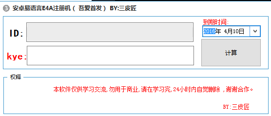 2.點(diǎn)擊計(jì)算即可,得到的注冊,輸入到自己的易安卓注冊界面即可完成