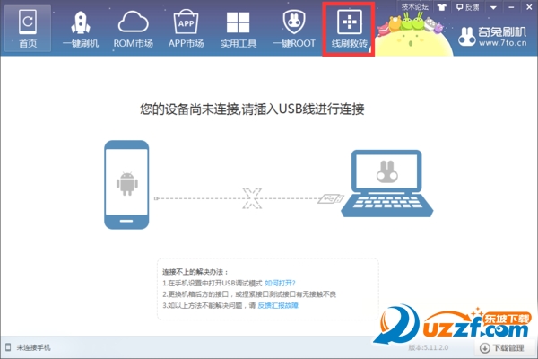 1、打開奇兔刷機軟件,點擊“線刷救磚”功能
