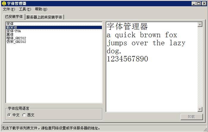 字體管理器的服務(wù)器端有大量的常用字體供你下載。