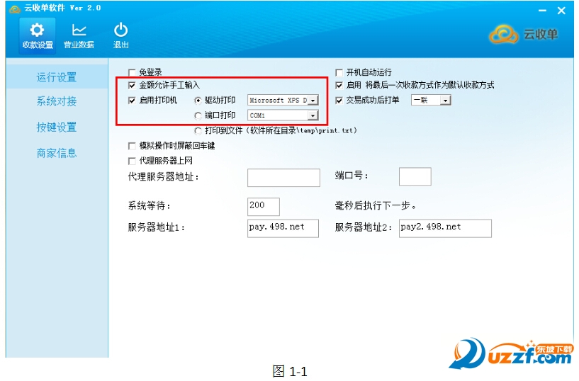 打開云收單軟件,輸入【商戶密碼】,進(jìn)入主程序。點(diǎn)擊【運(yùn)行設(shè)置】,然后,