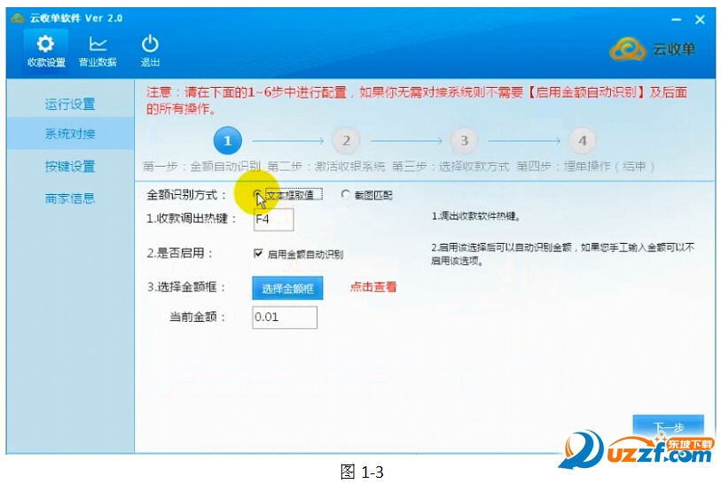 接下去,該收銀系統(tǒng)點(diǎn)擊【云收單】按鈕之后會(huì)出現(xiàn)如圖1-13的界面,需要鼠標(biāo)點(diǎn)擊【確定】按鈕。