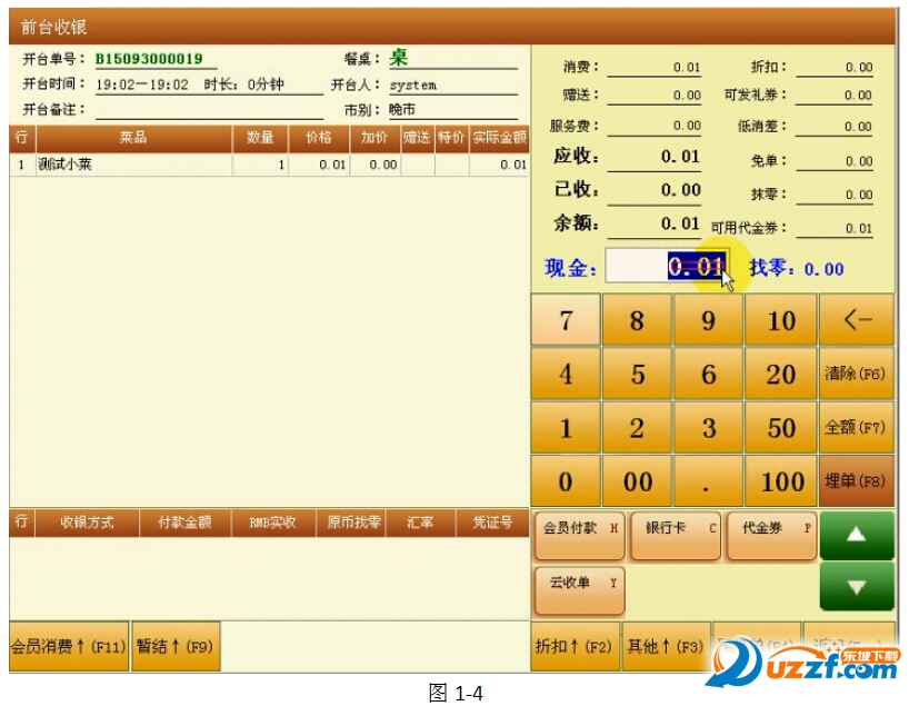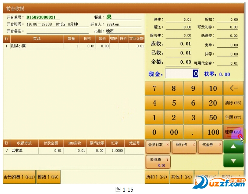 對(duì)接的時(shí)候,是將商戶收銀系統(tǒng)收款成功之后的操作步驟設(shè)置在云收單軟件中。該餐飲系統(tǒng)收款成功之后的操作是,鼠標(biāo)點(diǎn)擊選擇收款方式為【云收單】。