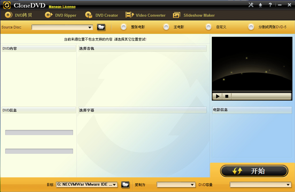 CloneDVD是一款功能強大的DVD光盤拷貝軟件,不管有沒有保護或加密,它都能百分之百真實的復制DVD,到目前為止還沒有一種軟件能象CloneDVD一樣完整地復制DVD。