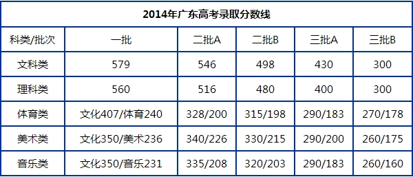 2014年廣東高考錄取分?jǐn)?shù)線
