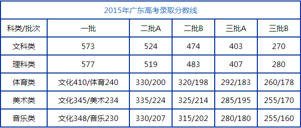 2015年廣東高考錄取分?jǐn)?shù)線