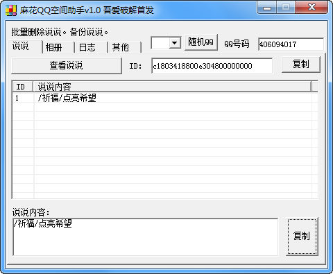 1、輸入要操作的QQ號碼,點(diǎn)擊【查看說說】可以備份或刪除說說