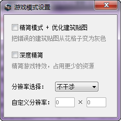 精簡模式:刪除了游戲的建筑貼圖,進入游戲會成一邊白色的世界,方便掛機流玩家。能有效的降低CPU,內(nèi)存的占用。