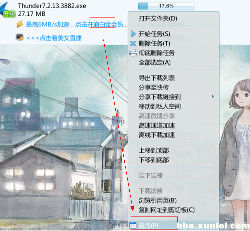 4、如用戶表示把文件下載到“電腦桌面”仍然有問題,請(qǐng)引導(dǎo)用戶右鍵當(dāng)前下載任務(wù)-屬性。