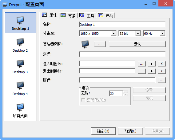 可單獨(dú)對每個(gè)桌面進(jìn)行配置