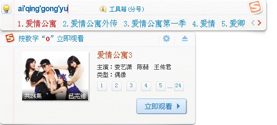 搜狗拼音輸入法將根據(jù)您當(dāng)前所處的情景,智能地調(diào)整候選排序,輕按空格就能讓您馬上打出想要的文字!例如你輸入qlz,在動(dòng)漫網(wǎng)站上會(huì)首選“七龍珠”,在淘寶上會(huì)首選“情侶裝”,在地圖搜索時(shí)會(huì)變成“七里莊”等等,更智能地匹配你要輸入的詞語(yǔ)。不過(guò)目前此功能只支持 IE 內(nèi)核的瀏覽器,譬如微軟自家的 IE9 或搜狗瀏覽器那些,用Chrome、火狐的同學(xué)只能等等了……