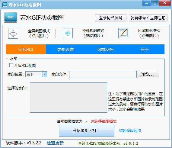 3、按展開高級選項,可以設(shè)置錄制時的水印、錄制速度等;