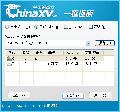 ChinaXV一鍵備份還原是一款傻瓜式的系統(tǒng)備份和還原工具。它具有安全、快速、保密性強、壓縮率高、兼容性好等特點,特別適合電腦新手和擔心操作麻煩的人使用。