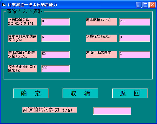 計算河道一維水體納污能力