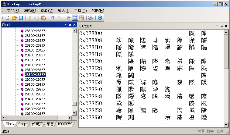 UniToy支持Unicode 5.0的全部字符,但這些字符的顯示需要字體文件的支持。例如: