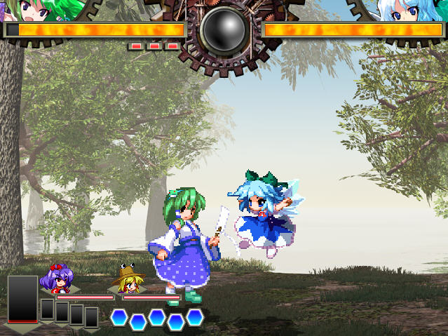 本作故事模式的符卡戰(zhàn)使用了新的Spell Break系統(tǒng),在特定時機攻擊對方會造成傷害。當形成Spell Break后更能對敵方角色造成巨大硬直,對于該系列而言是異常不錯的改進。