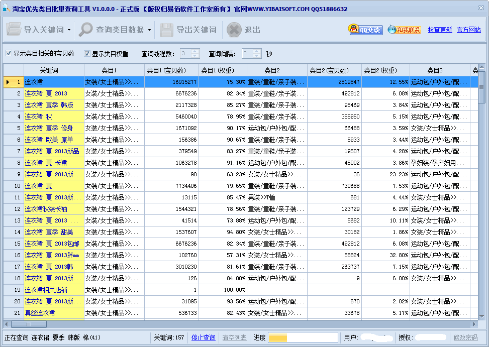 淘寶類目批量查詢工具是易佰軟件工作室推出的一款能夠批量查詢、導(dǎo)出淘寶優(yōu)先類目的軟件。開淘寶網(wǎng)店做好關(guān)鍵詞是非常重要的,關(guān)鍵詞做得越好,寶貝排名就越靠前,訪問量也就越多。這個(gè)軟件可以幫你批量查詢淘寶優(yōu)先類目的關(guān)鍵詞,是淘寶網(wǎng)店必不可少的工具。