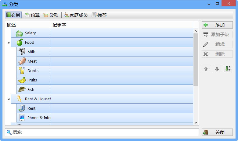 這些可以按照日期,賬戶,分類和總計(jì)進(jìn)行排序。可以生成分解和重復(fù)事務(wù)。