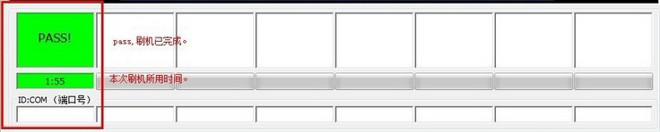 確認無語后開始刷機,等待滾動條,ID:COM信息變?yōu)榫G色則表示刷機完成