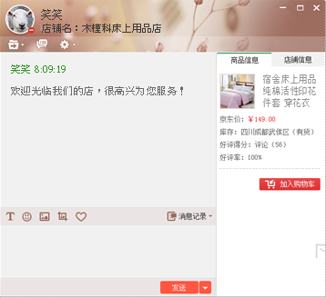 2、與京東客服溝通。在購(gòu)物交易圖中,有任何疑問需要聯(lián)系客服時(shí),點(diǎn)擊商家頁(yè)面的在線客服,客服MM就會(huì)來幫你(目前還是會(huì)跳轉(zhuǎn)到京東咚咚網(wǎng)頁(yè)版,有待完善)。